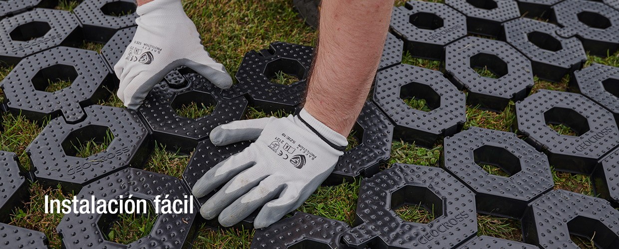 Con un peso de 1,5 kg y un 60 % de estructura de celdas cerradas, Geocross tiene la aptitud de “flotar” sobre el suelo, proporcionando el acceso de vehículos sobre los céspedes, las superficies verdes existentes, suelos pobres o áreas fangosas.