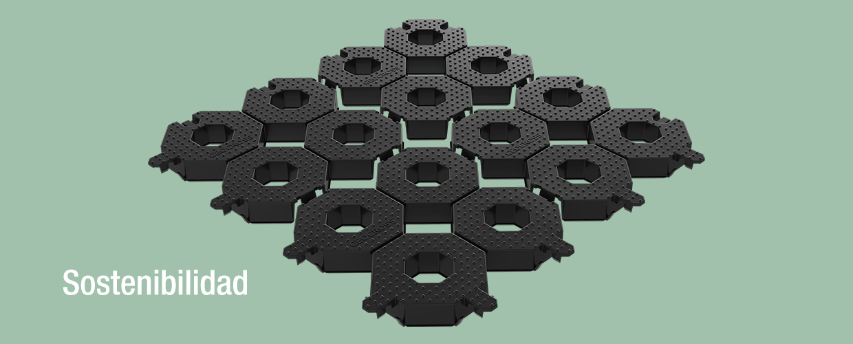 Geocross está hecho de 100 % polietileno reciclado – el tipo de plástico más utilizado, inicialmente hecho para envases, botellas y bolsas. Además es 100% reciclable.