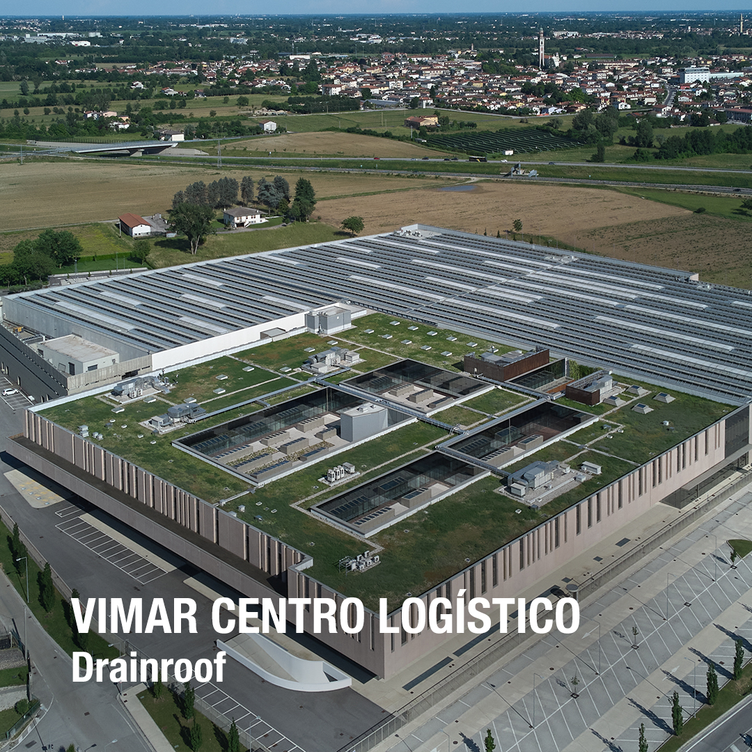 El complejo Vimar, compuesto por oficinas, instalaciones de producción y un almacén, necesitaba una solución de cubierta verde de bajo mantenimiento sin sistema de riego. Nuestros expertos recomendaron Drainroof para el tejado verde extensivo cubierto de sedum, que sólo requiere riego unas pocas veces al año.