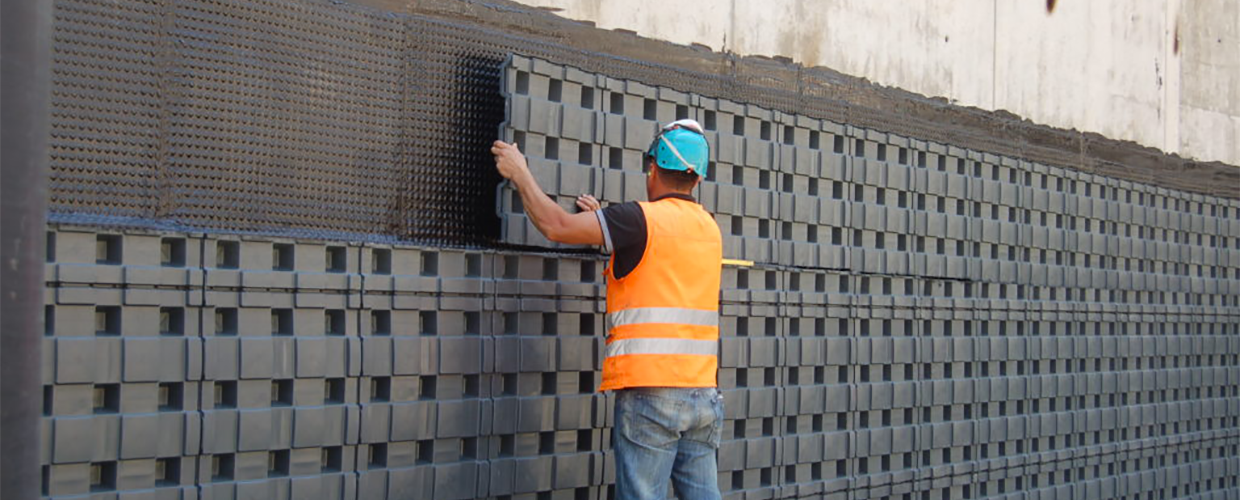 Defender, panel modular para la protección de muros de sótano.