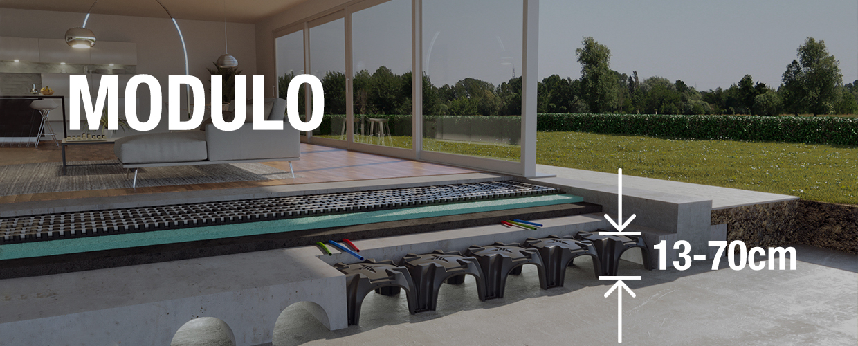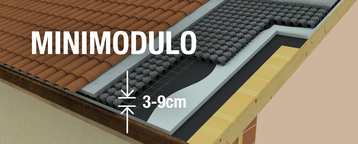 Minimodulo es perfecto para alturas de construcción limitadas. Este producto forma espacios vacíos de entre 3 y 9 cm solo, lo que hace que sea insustituible para remodelaciones, iluminación y ventilación de suelos, paredes y estructuras de techo.