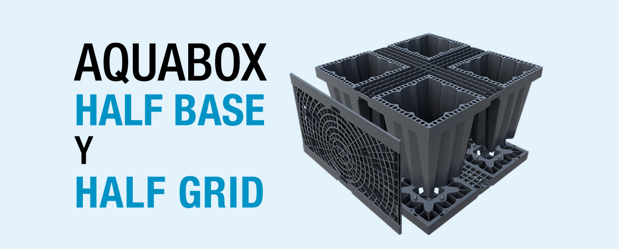 Sobre la base de los comentarios de los clientes, desarrollamos dos nuevos accesorios de Aquabox: el Aquabox Half Base, reduciendo la altura del depósito a 45 cm y el Aquabox Half Grid, que mantiene los módulos sellados contra los residuos.
