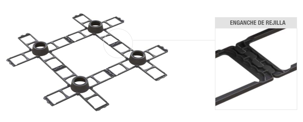 Montaje rápido: la colocación de las rejillas y la inserción del encofrado son fáciles, intuitivas y se pueden instalar en muy poco tiempo.