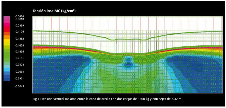 Para el conjunto estructural se considera la solución de espesor mínimo, constituida por una capa de hormigón de limpieza de espesor 12 cm, el sistema NUEVO ELEVETOR de altura 95 cm y un forjado de espesor 5 cm. Se ha modelado una sección de terreno de longitud 16,82 m y profundidad 7 m constituida por 6,30 m de arcilas blandas y 0,70 m de puzolañas y grava bien compactadas.