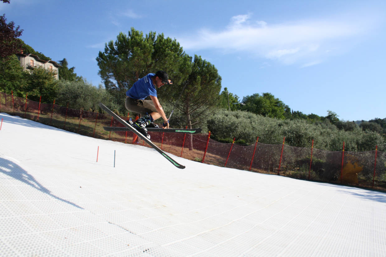 Geoski es una revolucionaria superficie sintética fabricada en polietileno que permite practicar deportes de invierno durante todo el año, incluso sin nieve.