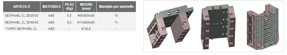 GEOPANEL es un encofrado en plástico ABS estable a los UV. Es ligero (pesa máximo 11 kg) y puede ser montado por una sola persona sin el uso de gruas. El producto es reutilizable más de 100 veces.