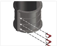 Todas las manillas necesarias deben ser utilizadas e insertadas en los agujeros para garantizar el perfecto fisaje del encofrado. Las manillas pueden ser indiferentemente orientadas hacia abajo o hacia arriba, de preferencia sin superposiciones.