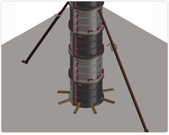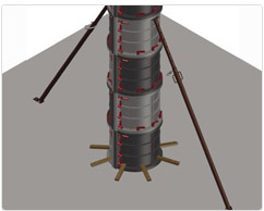 la aplomadura de GEOTUB es fácil y rápida. Dos puntales estándar son suficientes para apuntalar el encofrado y estabilizarlo.