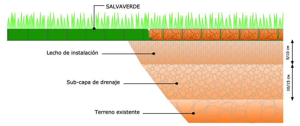 | Tamaño SALVAVERDE® Tipo A | 50 X 50 X H4 cm (4 piezas = 1 m) |