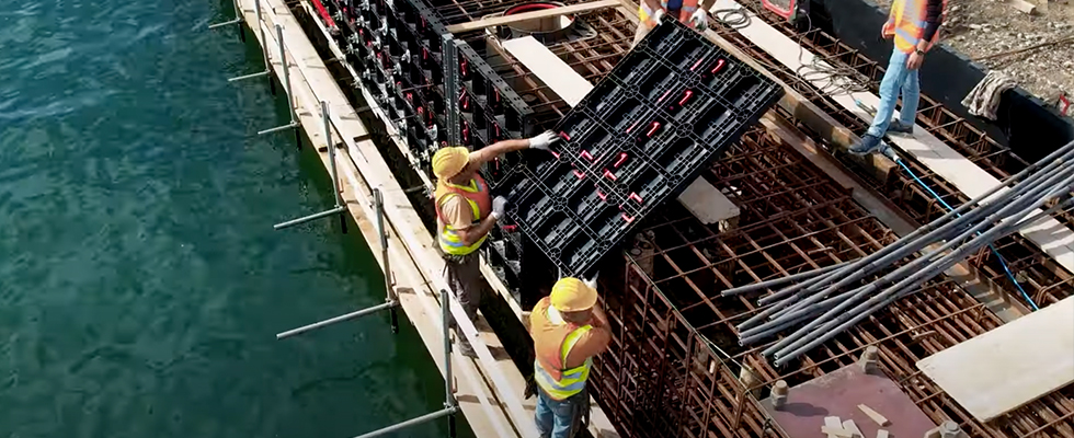 Nuestro cliente necesitaba el encofrado adecuado para los entornos complicados y que se puede instalar en los espacios reducidos sobre el agua.