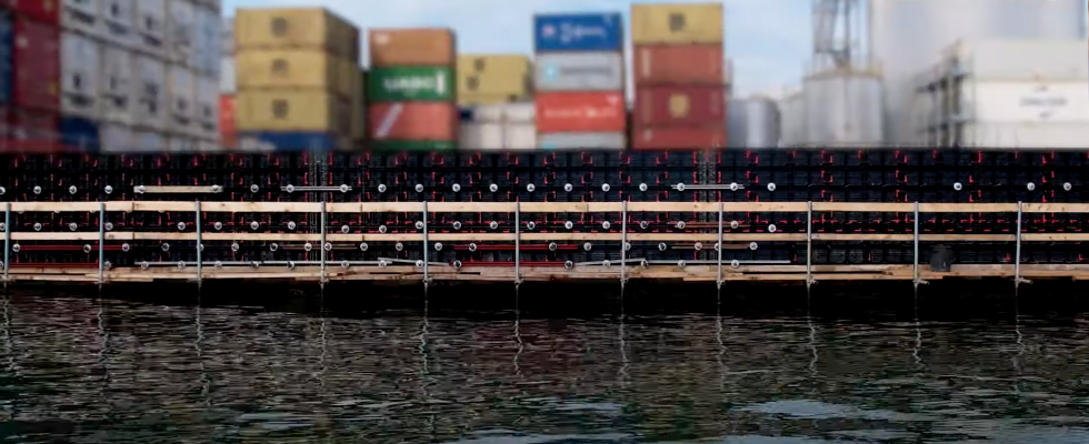 Geopanel está fabricado de plástico reciclado y es resistente a la intemperie, por lo que era perfecto para la obra en el Puerto Quai y trabajo en el entorno marino.