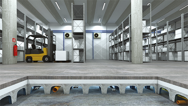 Los almacenes y los refrigeradores son construcciones cada vez más presentes en la industria alimentaria. En estos ambientes el frío se transmite a través de la estructura y baja al suelo reduciendo su temperatura por debajo de 0°C.