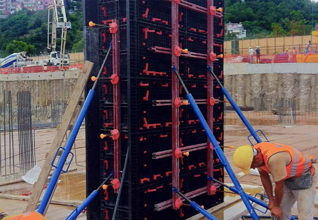 El sistema GEOPANEL STAR es compatible con los encofrados GEOPANEL para muros. La modularidad de los productos Geoplast S.p.A. permite realizar configuraciones particulares, como la inserción de columnas en las paredes de hormigón armado con un único hormigonado