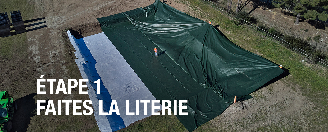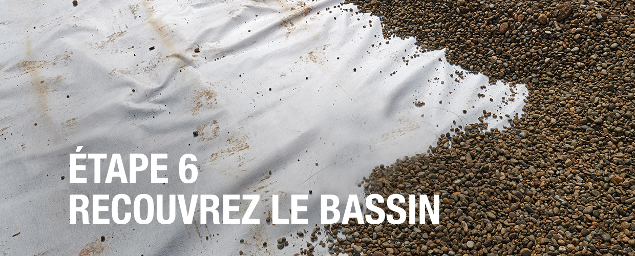 Recouvrez le bassin de géotextile. Scellez-le avec une géomembrane et une 2e couche de géotextile, si nécessaire. Recouvrez de terre.