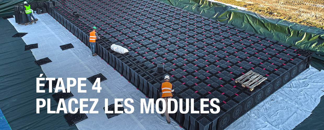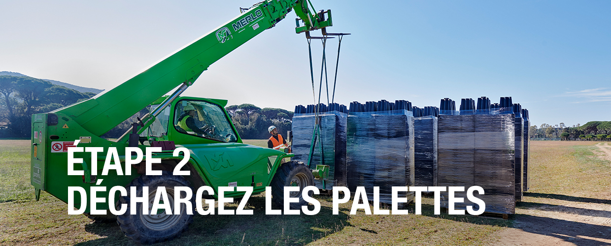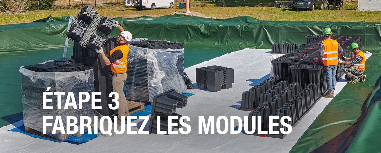Déballez les palettes et assemblez les demi-éléments pour créer des modules Aquabox.