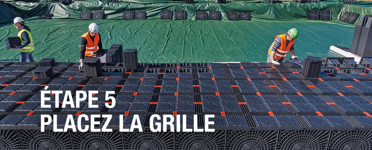 Creusez une tranchée et nivelez le sol. Recouvrez-le de géotextile (pour les bassins d’infiltration) et, si nécessaire, de géomembrane et 2e couche de géotextile (pour la rétention et la réutilisation).