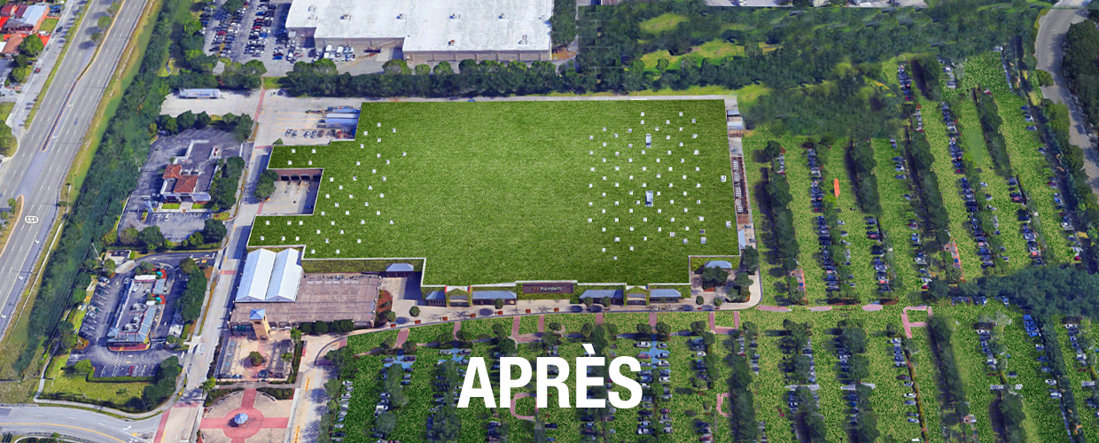 Malgré le fait que chaque ouverture nécessite des rénovations et présente une opportunité d’améliorer durablement la rentabilité, les magasins de grande surface ne cessent de répéter les vieilles erreurs : les eaux pluviales sont gérées avec des bassins de rétention, les toits plats gaspillent l’énergie de chauffage et de refroidissement, tandis que les parkings en asphalte augmentent les risques d’inondation et les risques des îlots de chaleur urbains.