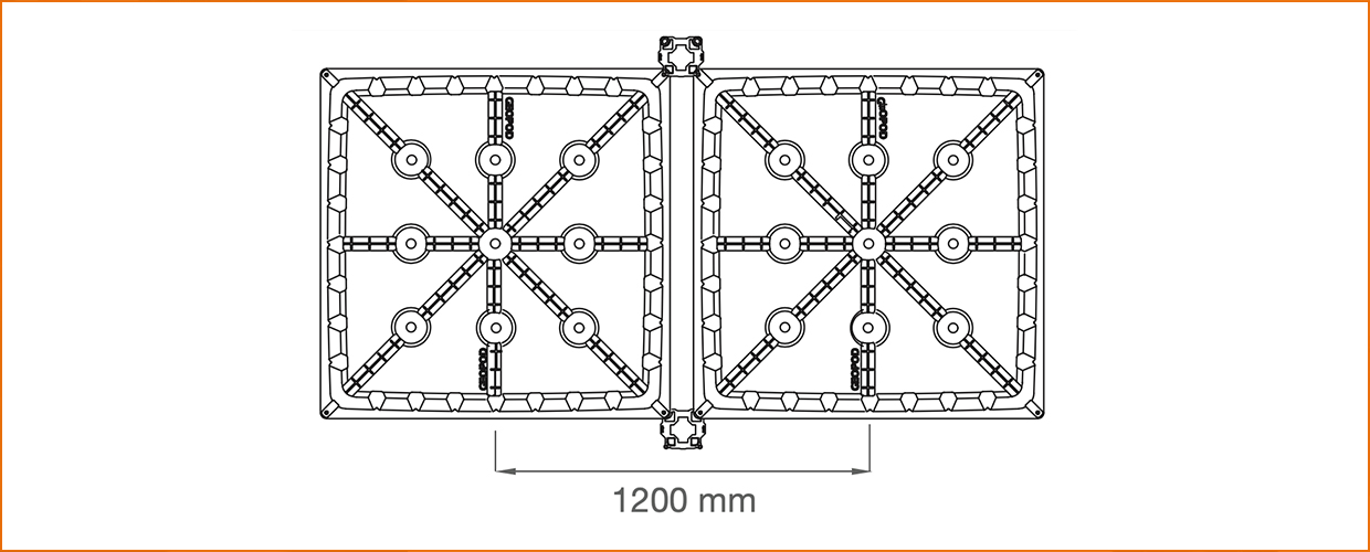 Fabriqué à partir de grands modules de 109 x 109 x h30 cm, Geopod est conçu pour créer des nervures en béton espacées de 120 cm, conformément à la taille maximale autorisée par la norme AS 2870-2011 pour les dalles nervurées au sol.