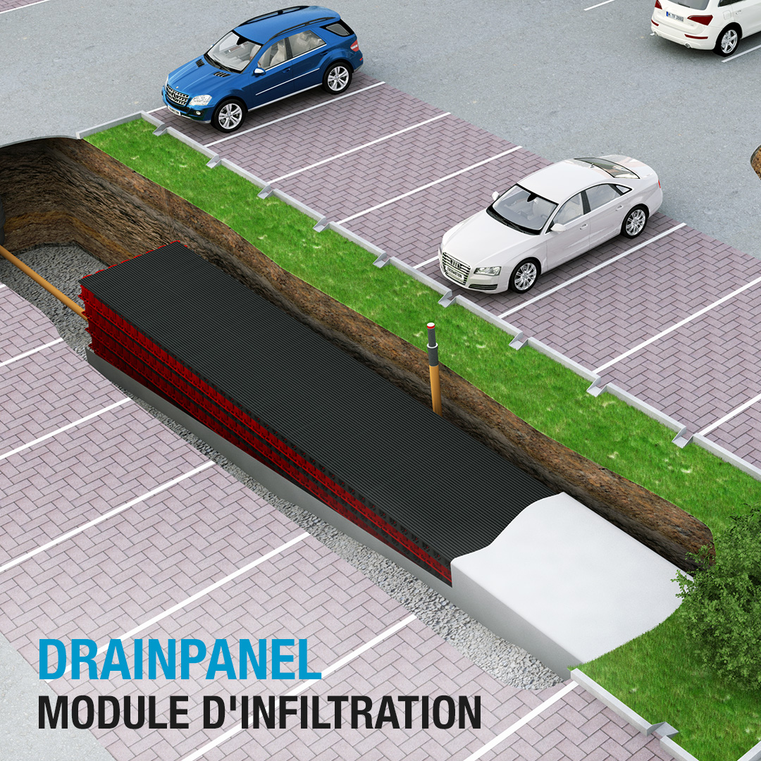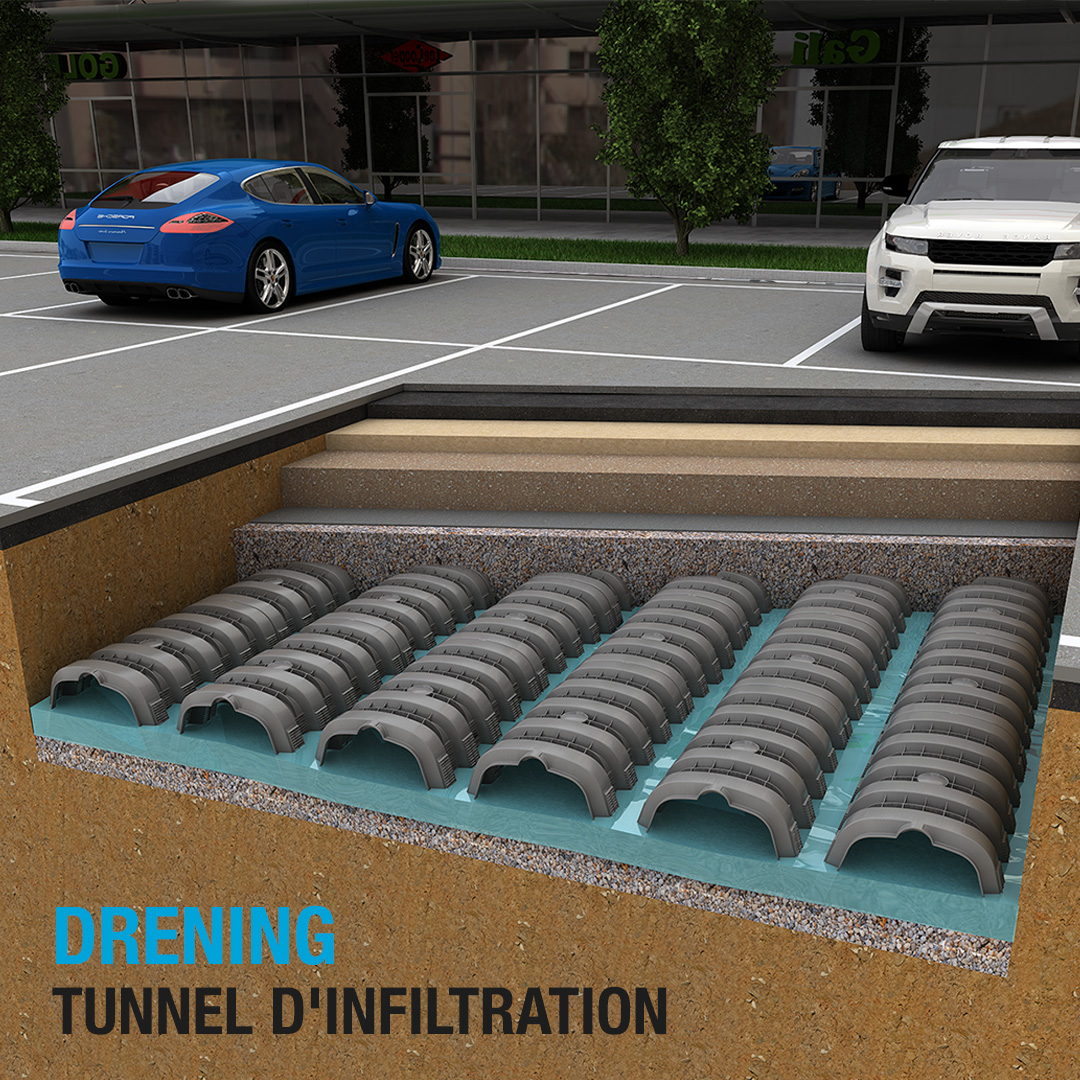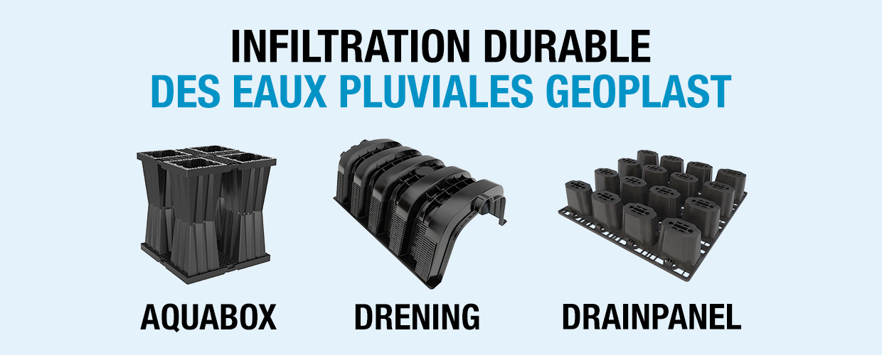 Infiltration durable des eaux pluviales Geoplast: Aquabox, Drening, Drainpanel