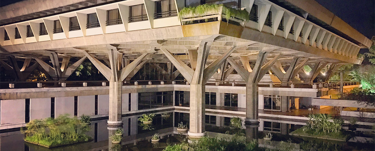 L’Ambassade d’Italie à Brasilia est articulée dans le volume principal, qui comprend la chancellerie et la résidence de l’ambassadeur, et dans le deuxième volume, avec un plan en forme de croix, qui comprend les logements du personnel. Typique du travail de Nervi, le bloc principal avec sa forme complète, impossible à répéter ou à modifier, comporte une double symétrie et est configuré comme un «Palazzo», transfiguré de manière moderniste par l’énergie structurale du béton armé et les qualités expressives de ses surfaces exposées. L’élément structurel cardinal est le tétrapode, une colonne octogonale qui s’ouvre avec quatre bras. Ce type de configuration confirme l’habitude de Nervi, typique de toute l’architecture italienne d’après-guerre, de concevoir des formes structurelles finies, contrairement à toute tentative de normalisation.