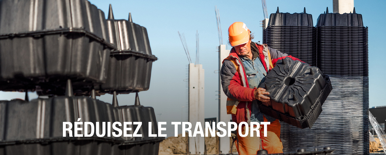 Contrairement au bois, au carton et au PSE, les solutions de coffrage et de dalle réutilisables de Geoplast ne créent aucun débris, réduisant ainsi la quantité de déchets qui se retrouvent dans les décharges.