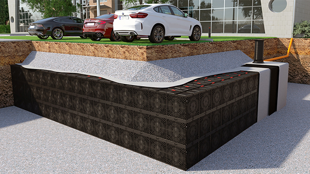 AQUABOX est un système flexible et à forte capacité de charge pour la gestion durable et la réutilisation des eaux pluviales. Sa structure modulaire permet de créer des bassins souterrains de toute taille pour collecter les eaux pluviales de diverses surfaces urbaines : toits, espaces verts, places publiques, mais aussi parkings, routes et installations industrielles soumises à un trafic intense.