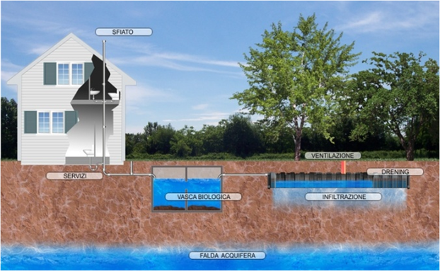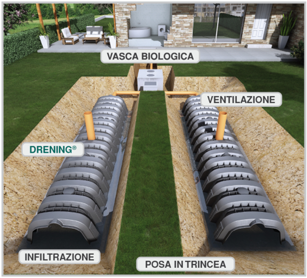 L’installation des cheminées d’aération dans le système favorise la pénétration d’air de l’extérieur de manière naturelle et rend plus facile l’assainissement biologique des eaux sales; de cette façon on rend un’eau plus propre à l’environnement et on prévient la formation des mauvaises odeurs.