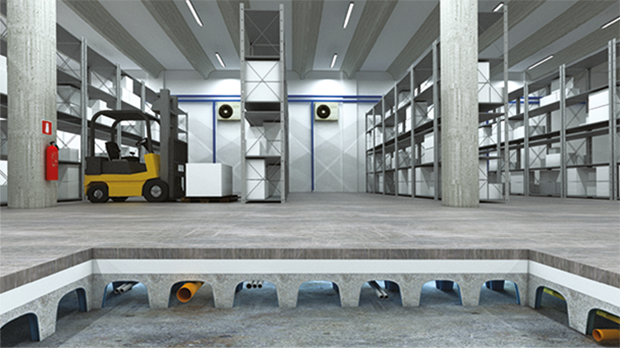 Magasins et cellules du réfrigérateur sont de plus en plus réquises dans l’industrie alimentaire. Très souvent dans ces lieux le gel se transmet à travers de la structure et arrive au terrain, en le bloquant à des températures inférieures à 0° C.