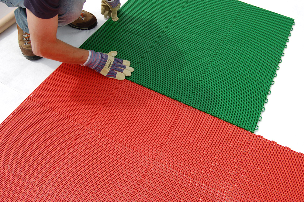 Gripper Outdoor est idéal pour toutes les applications extérieures et permet la construction de champs fixes ou temporaires. La perforation de la surface assure un drainage rapide en cas de pluie, un nettoyage facile et une sécurité maximale dans tous les sports. L’installation, grâce à l’accouplement spécial Snap-fit, peut être facilement réalisée même par du personnel non spécialisé. Enfin, le revêtement de sol Gripper Outdoor est traité contre les rayons UV pour assurer un entretien optimal dans le temps.