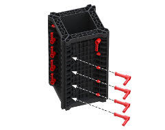 Le plombage du coffrage Geotub Panel est simple et rapide. Il suffit d’étayer le coffrage en deux points avec des étais allongeables à plaque. GEOTUB Panel n’a pas besoin d’emploi d’huiles de décoffrage.