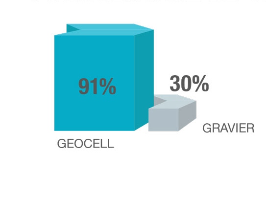 GEOCELL permet un mouvement bidirectionnel, à la fois le long de la verticale, à la fois le long de la pente de la chaussée, en transportant l’eau vers le réseau de drainage. De cette façon, même si le sol sous-jacent devient saturé et infiltration est inhibée, l’eau peut circuler horizontalement, ce qui empêche le colmatage du package.
