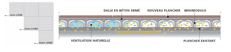 Particulièrement indiqué pour la restructuration car il peut être posé sur murs et planchers préexistants. MINIMODULO est idéal pour sols en parquet et moquette que souffrent souvent des problèmes d’humidité, de condensation, de moisissures qui en réduisent la durée de vie.