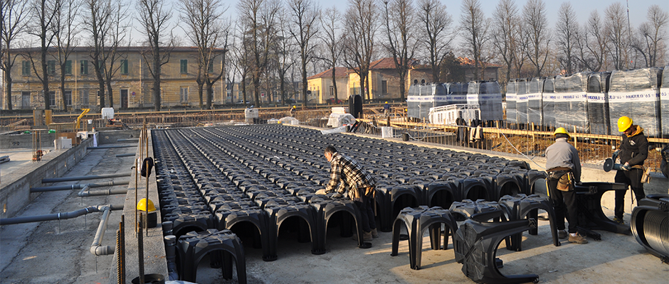 Modulo est un coffrage permanent conçu pour la construction de vides sanitaires classiques et ventilés, créant une barrière physique entre le sol et le bâtiment. Grâce à une ventilation naturelle ou forcée, le vide sanitaire construit avec Modulo élimine les remontées d’humidité et dirige le gaz radon vers l’atmosphère, améliorant ainsi la santé à l’intérieur, et la durabilité de la structure.