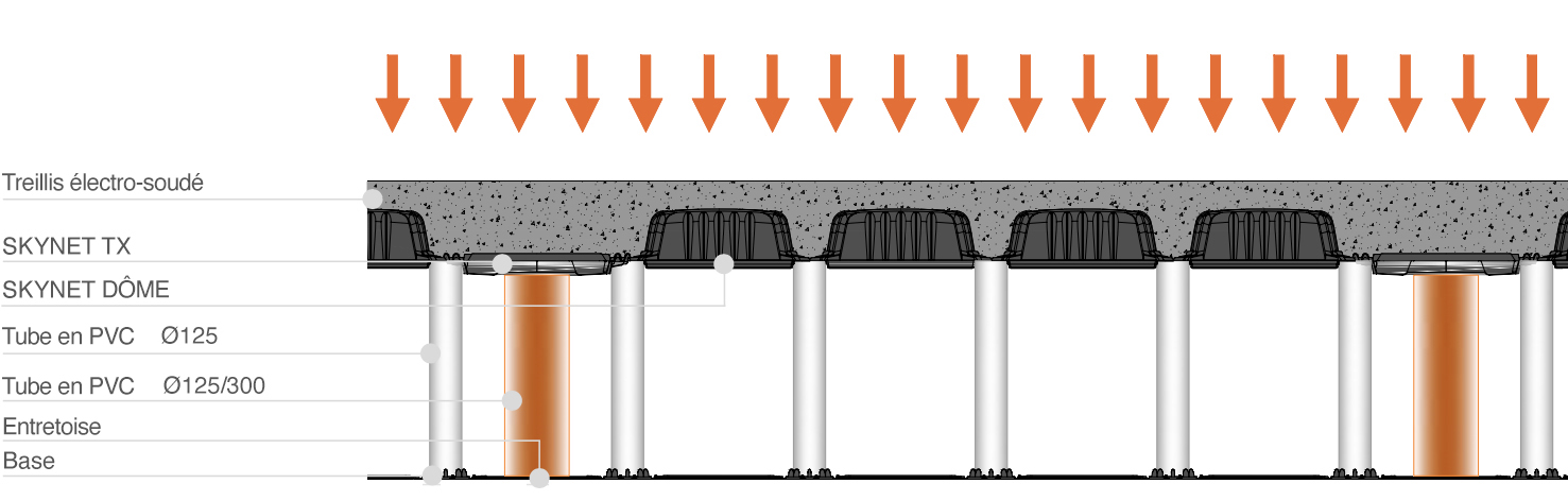 * Valeur indicative pour une dalle de 5cm d’épaisseur. La quantité de renforcement à l’intérieur de la colonne et sur Skynet TX devra être évaluée avec le service technique de Geoplast.