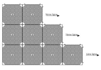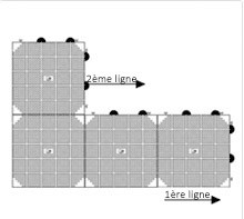 Poser les pieds laterales et superieures comme dans la figure; les pieds sont pré-disposés pour s’emboîter parfaîtement avec deux carreaux côté à côté;