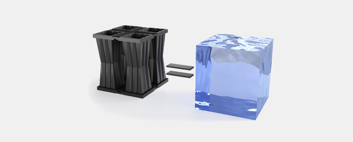 L’acqua meteorica si accumula nel vuoto creato dall’accoppiamento dei due semi-moduli Aquabox. Il volume “libero” è pari al 96% del totale della struttura. La geometria cava dei moduli Aquabox permettono infatti un altissimo volume di stoccaggio.