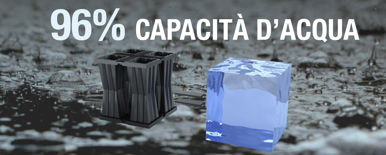 Aquabox trasforma il 100% del volume lordo nel 96% di volume netto utile per lo stoccaggio dell’acqua.