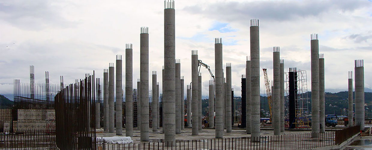 Cantiere Bolshoy Ice Dome, arena sportiva a Sochi, Russia, che ha ospitato numerose competizioni durante le Olimpiadi invernali del 2014. Geotub di Geoplast è stato impiegato per realizzare colonne fino a 7,2 m di altezza.