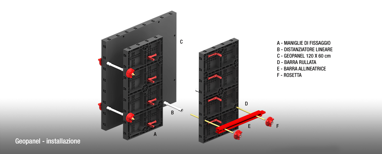 La stessa serie di accessori è stata successivamente applicata alle nostre differenti tipologie di casseforme: Geopanel Star, Geotub, Geotub Panel, nonché Geosky, la nostra cassaforma per solai. Questo ha reso il sistema di casseforme Geoplast così versatili da poter essere utilizzate per il getto di qualsiasi superficie in calcestruzzo: pareti, pilastri, fondazioni, travi, fosse e pozzetti, pareti strutturali, solai o solai di copertura.
