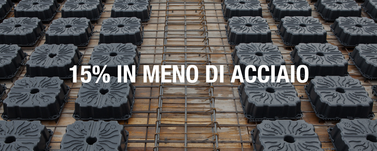 Il minor peso del solaio riduce il carico su colonne, pareti e fondazioni fino al 16%, riducendo inoltre l’uso di calcestruzzo nell’intero edificio.