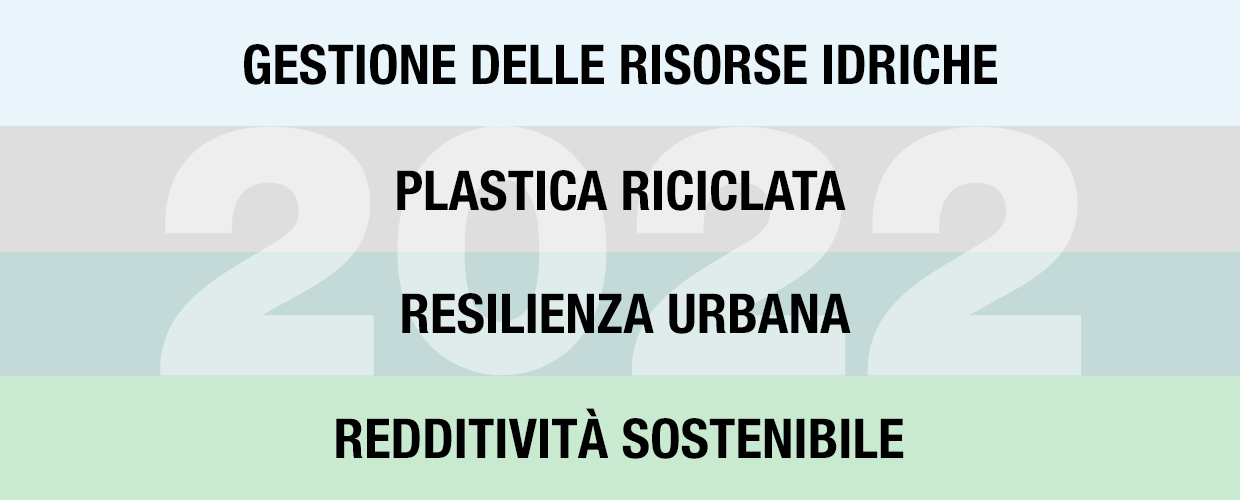 Nel 2022, il mercato delle costruzioni sarà principalmente focalizzato sulla sostenibilità (edifici a basso impatto energetico e riutilizzo dei materiali) e sulla digitalizzazione (BIM). L’attenzione al cambiamento climatico provocherà un crescente interesse per gli edifici verdi (giardini pensili, facciate verdi) e la gestione sostenibile delle acque piovane per la prevenzione dalle inondazioni.