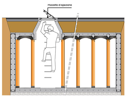 La vasca NUOVO ELEVETOR® TANK è ispezionabile tramite un pozzetto di ispezione.