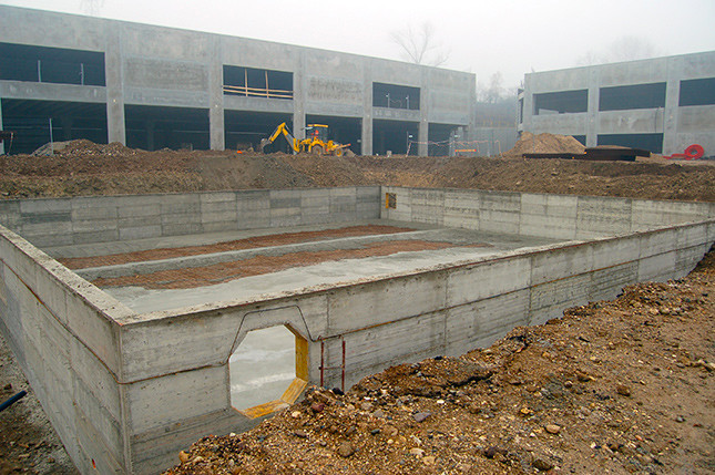 Realizzazione del fondo e delle pareti della vasca e predisposizione dei vani per i sistemi di pompaggio, dei pozzetti di ispezione o di altri manufatti idraulici.