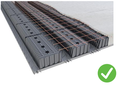 Data la natura impermeabile dei casseri non c’è pericolo che l’acqua venga trattenuta pertanto la finitura dell’intradosso del solaio sarà sempre ottima.