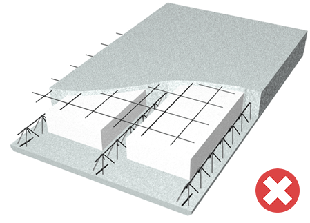 Il polistirolo viene apoggiato sopra al cls fresco, cossichè l’unica aderenza è data dalla piccola superficie tra i due materiali.
