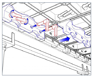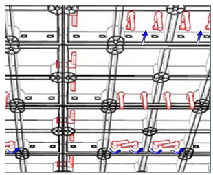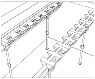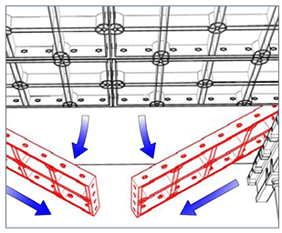 Il sistema GEOSKY è composto da pannelli GEOPANEL® 120×60 cm (con peso massimo di 11 kg) e da 3 travetti in plastica da posizionare adeguatamente sopra le travature tradizionali in legno H20 che permettono il disarmo anticipato.