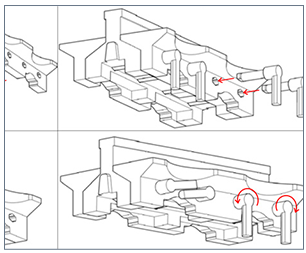 In corrispondenza dei TRAVETTI Y togliere le maniglie e rimuovere i cunei laterali.