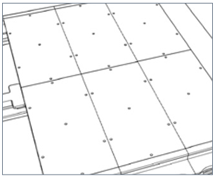 In corrispondenza delle file di travetti ad “H” fissare i pannelli GEOPANEL con 2 maniglie per pannello come da disegno.
