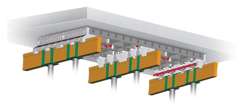 permette di disarmare parzialmente dopo pochi giorni, in dipendenza dallo spessore del solaio, dal tipo di CLS e dalla stagione, grazie al sistema a cuneo.