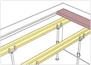 Posizionare i puntelli in ferro e inserire le travi in legno. Fissare l’elemento d’appoggio al muro.